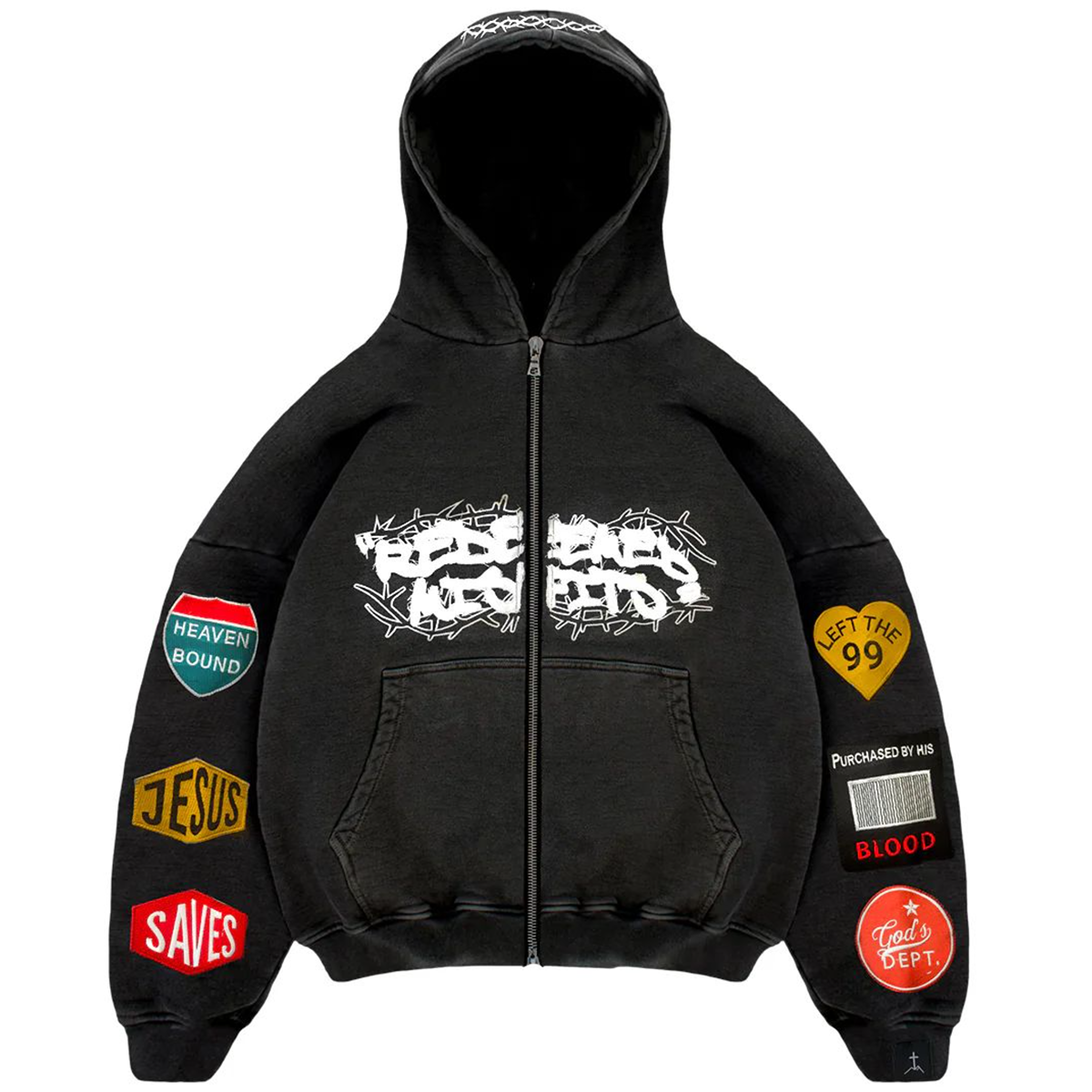 'THE REDEMPTION' ZIP UP HOODIE VINTAGE WASH/BLACK
